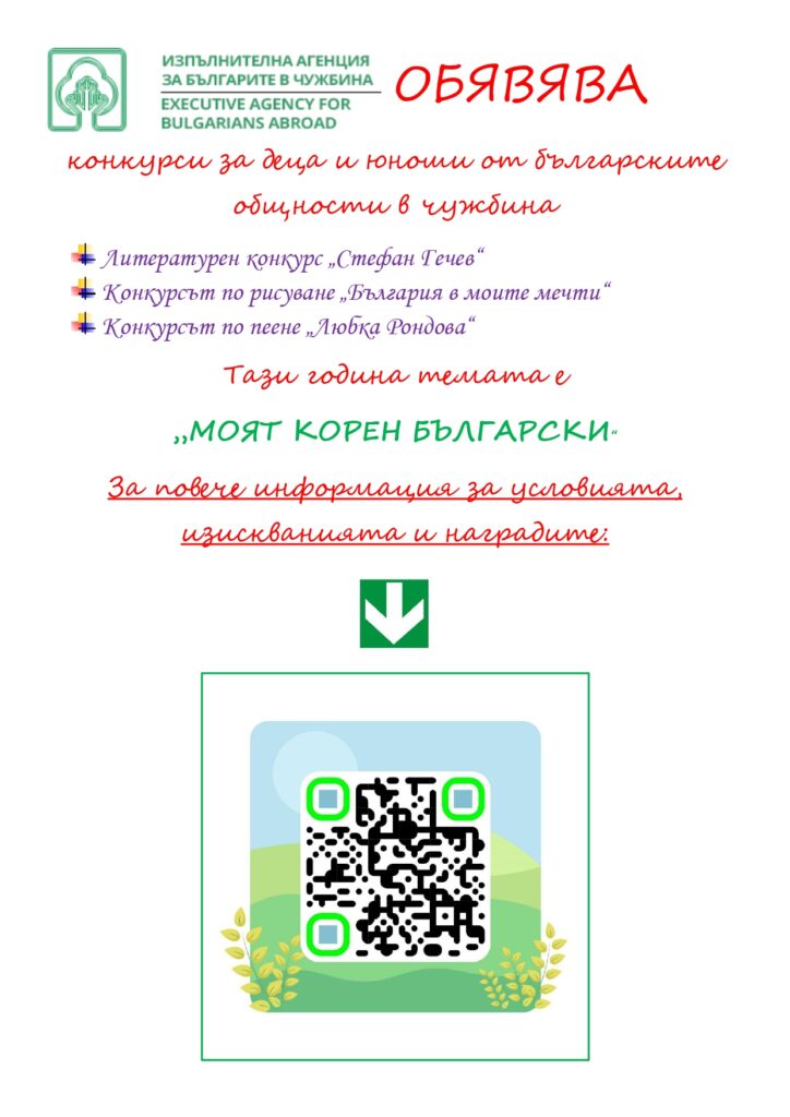 Исполнительное агентство по делам болгар за рубежом объявляет об открытии традиционных соревнований для детей и подростков из болгарских общин за рубежом на 2024 год.